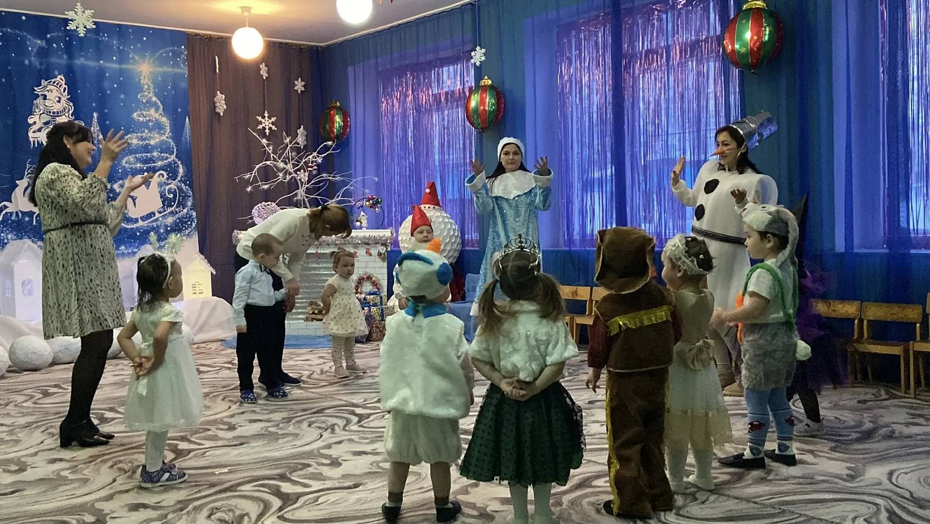 Новогодний утренник начался с появления сверкающей ёлки, украшенной яркими игрушками и гирляндами. Малыши пришли нарядными, превратившись в весёлых зайчиков и красивых снежинок. Дети с удовольствием играли, пели, танцевали у нарядной ёлочки. Снегурочка, Дедушка Мороз порадовали ребят долгожданными подарками. Малыши с радостью получили свои новогодние сюрпризы. Утренник прошёл в тёплой и радостной атмосфере и стал ярким и запоминающимся событием в жизни малышей.