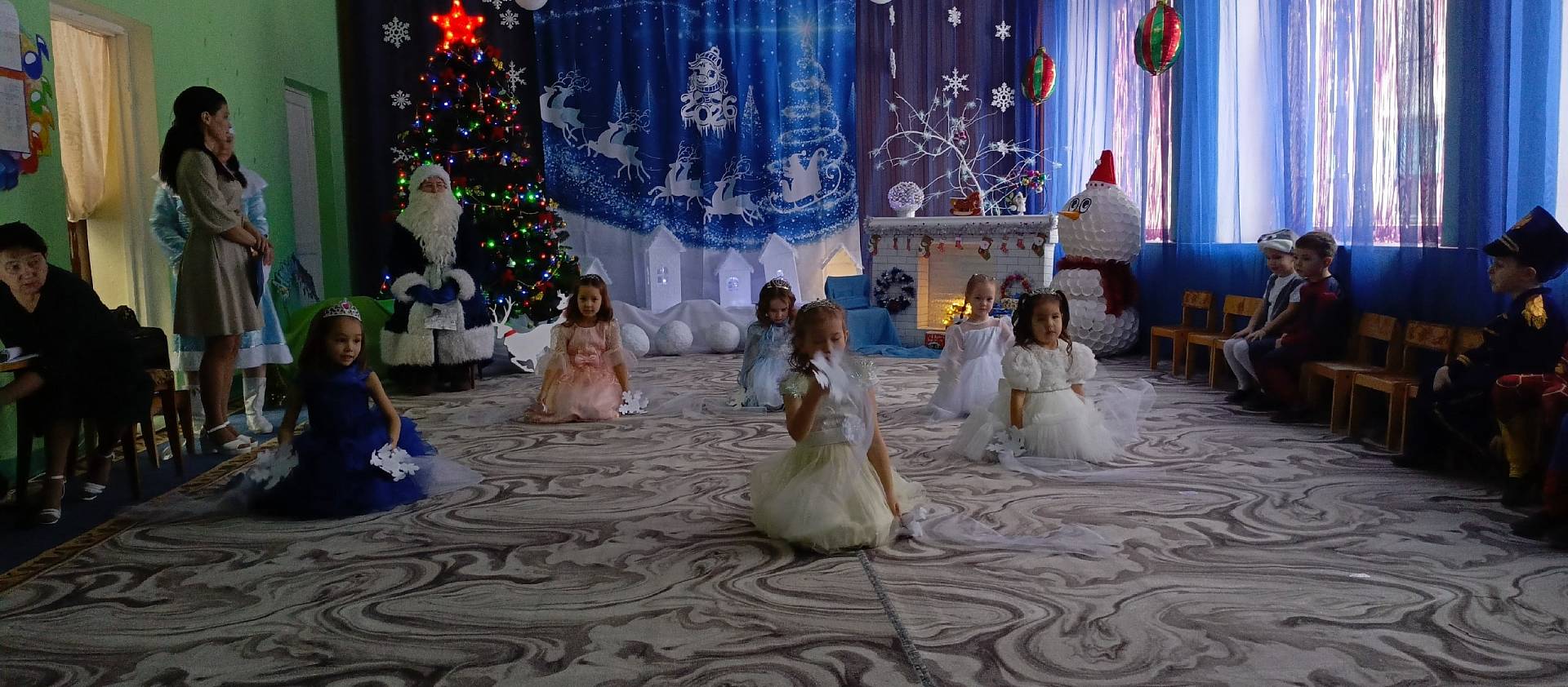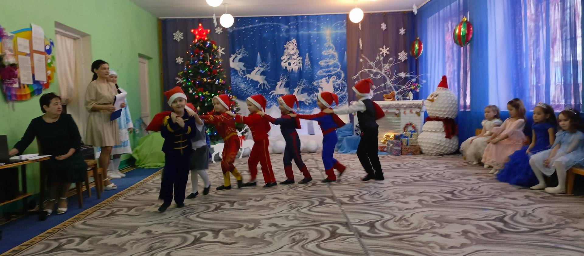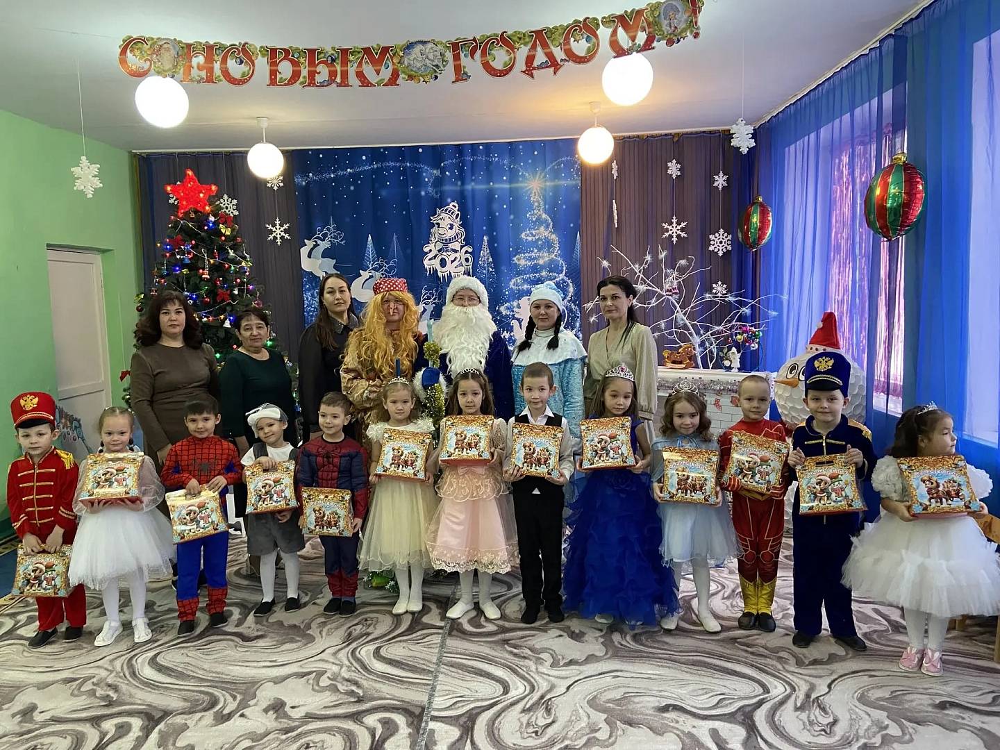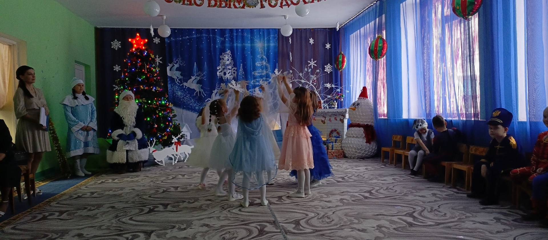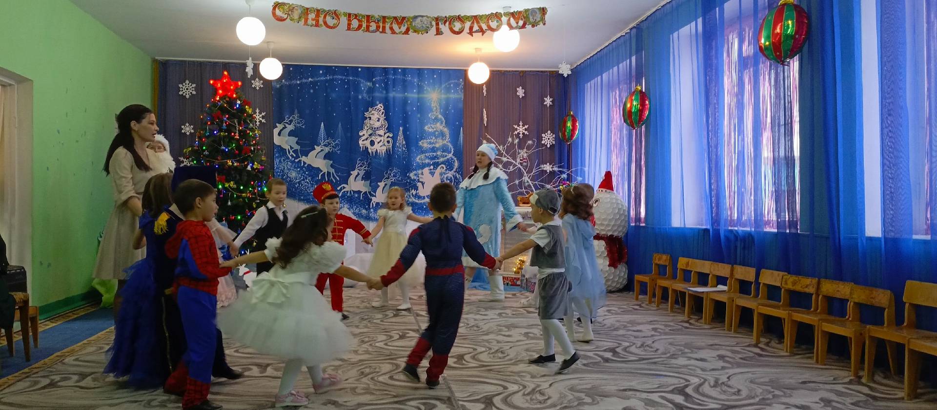 26 декабря в старшей группе прошел новогодний утренник «Новогодние приключения». Красиво украшенный зал, нарядная елка, подарки, Дед Мороз и Снегурочка с Бабой Ягой ожидали наших детей. Ребята погрузились в мир чудес, приключений, невероятных превращений и сюрпризов. Дошколята танцевали, пели песни, читали стихотворения, водили хороводы, с удовольствием участвовали в играх и конкурсах. Дети получили массу положительных эмоций и долгожданные подарки из рук Деда Мороза.